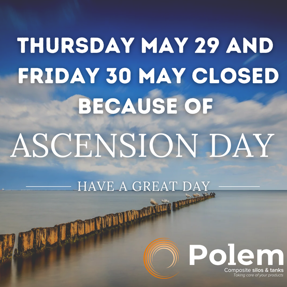 We are taking a break from production: Thursday, May 29 and Friday, May 30, our doors are closed due to Ascension Day. Our employees are enjoying a well-deserved long weekend.