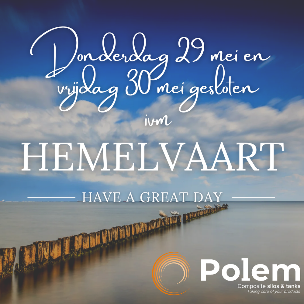 We hebben even een pauze in de productie: donderdag 29 en vrijdag 30 mei zijn onze deuren gesloten vanwege Hemelvaart. Onze medewerkers genieten van een welverdiend lang weekend.